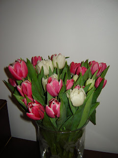 Eilen ostin kaupasta tulppaaneja. Niistä olen haaveillut jo pari viikkoa. Mutta ajattelin että ostan niitä vasta kun olen viikonloppuna kotona. Pääsiäistä varten ostin Heljän pupuja ja pakko oli muumifanin ostaa myös 30€ arvoinen muumimuki. Tuli niin keväinen olo kukista ja siitä että ulkona on plussa asteita ja katolta tippuu vettä. Viikko sitten tuntui vielä niin onnettomalta tuo kevään tulo.
